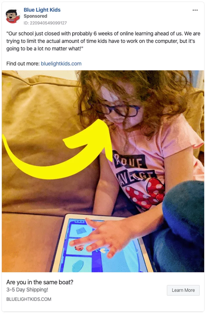 A great example of brand adaptation is Blue Light Kids company, which sell glasses that protect children’s eyes during screen time