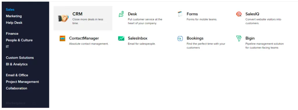 In reality, Zoho is not only CRM software. It’s a business management tool that can support and boost all business aspects. It looks like Magento, but in the CRM world, it has a lot of features, extended functionalities, integrations, and apps that cover all your needs.