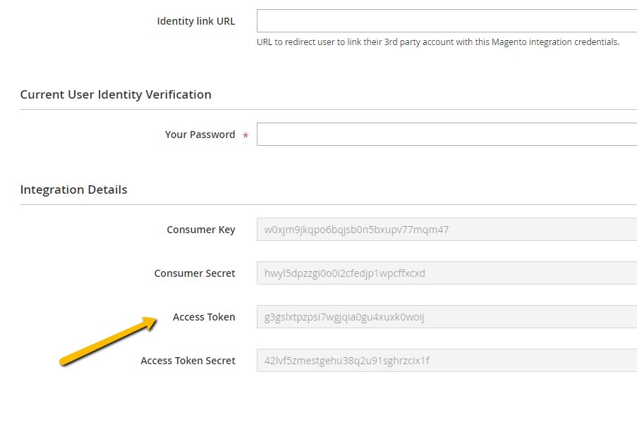 7. You will be presented with a screen with 4 fields containing some keys. The Access Token field is the field you need.